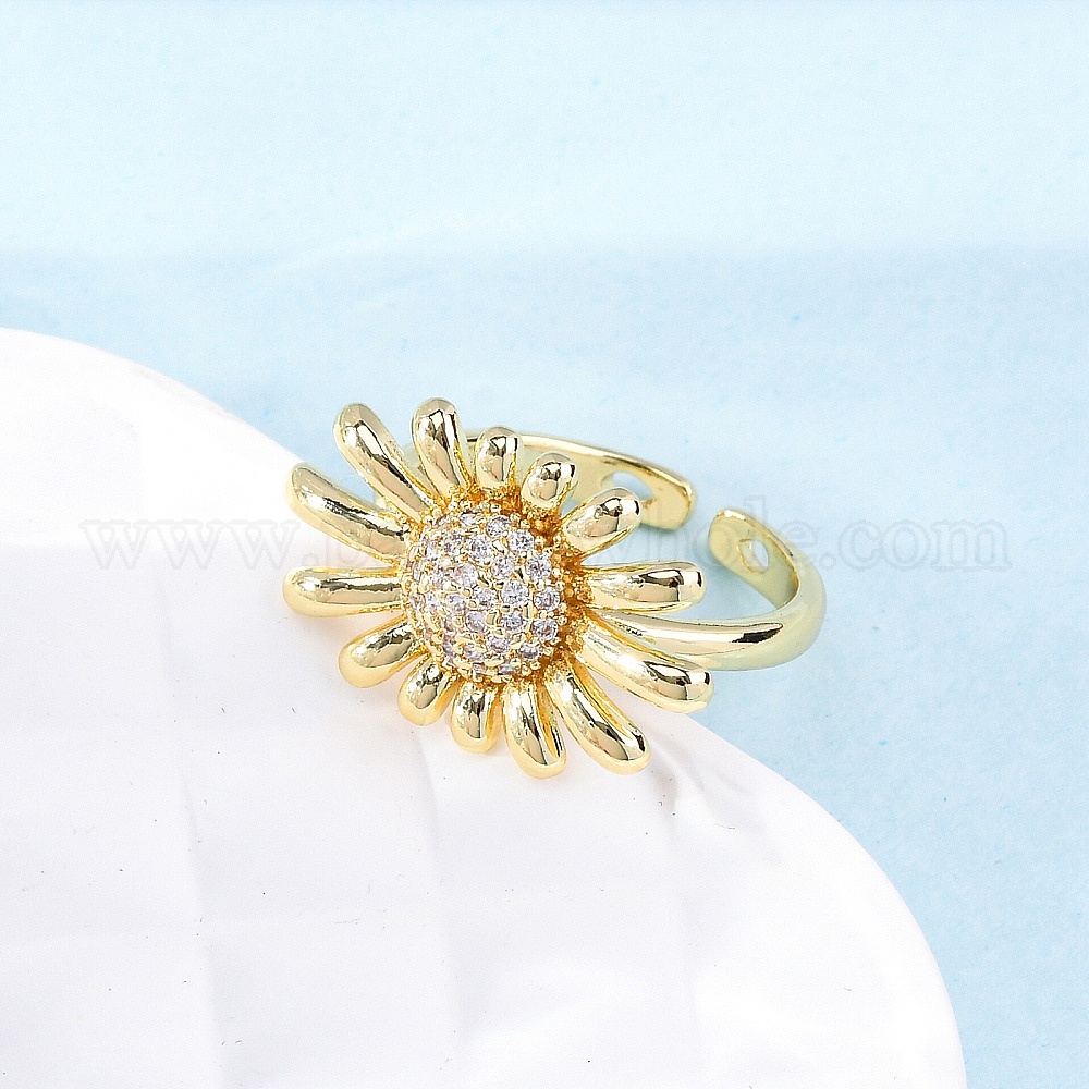 Латунные кольца-манжеты с микропаве и прозрачным цирконием для женщин, подсолнечник, стойки покрытие, без кадмия и без свинца, долговечный