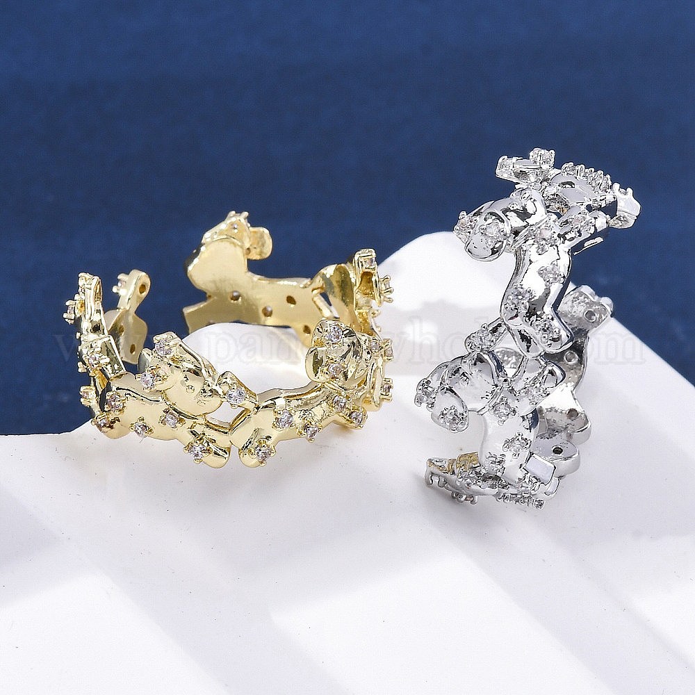 Латунные кольца-манжеты с микропаве и прозрачным цирконием для женщин, собака, без кадмия и без свинца, долговечный, стойки покрытие