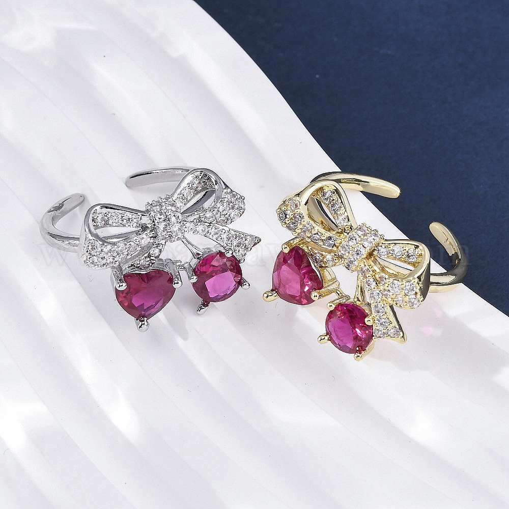 Манжеты из латуни с микро паве кубический цирконий для женщин, вишня, без кадмия и без свинца, долговечный, стойки покрытие