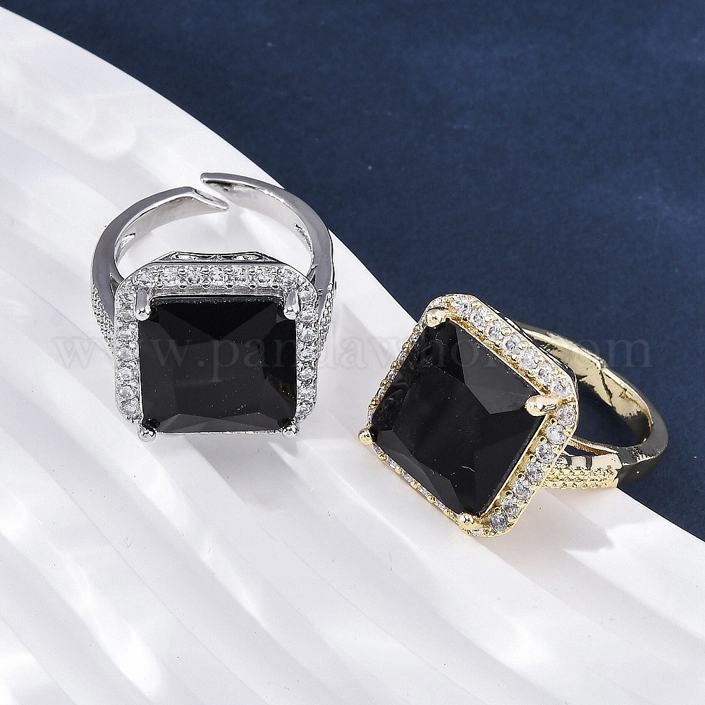Латунные кольца-манжеты с микропаве и прозрачным цирконием для женщин, Sqaure, со стеклом, без кадмия и без свинца, долговечный, стойки покрытие
