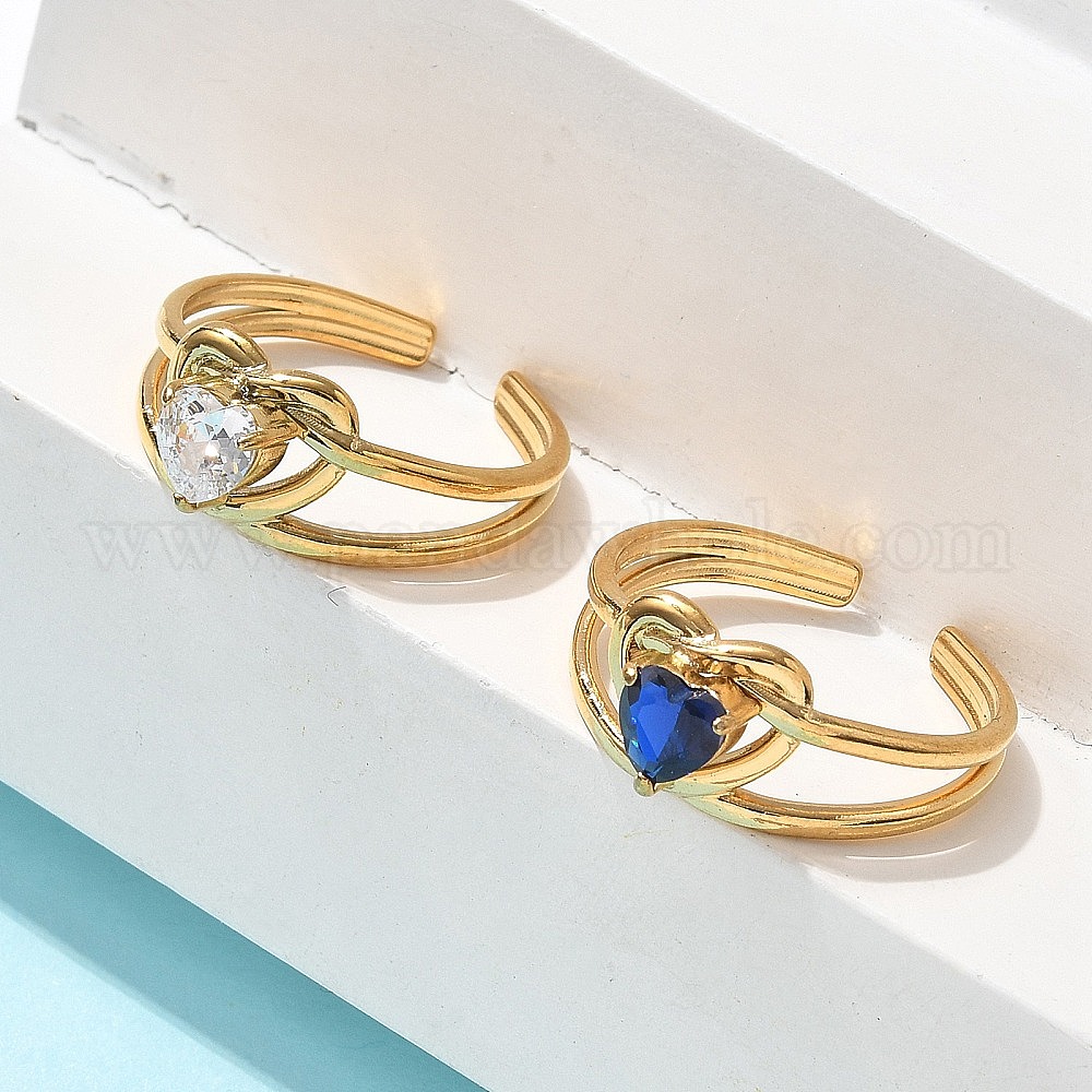 304 Кольца-манжеты из нержавеющей стали с кубическим цирконием для женщин, сердце, реальный 18 k позолоченный