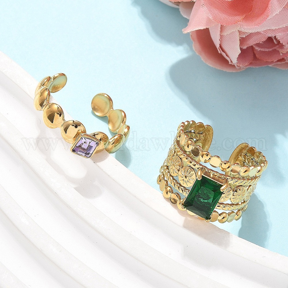 304 из нержавеющей стали Манжета кольца для женщин, с кубического циркония, реальный 18 k позолоченный