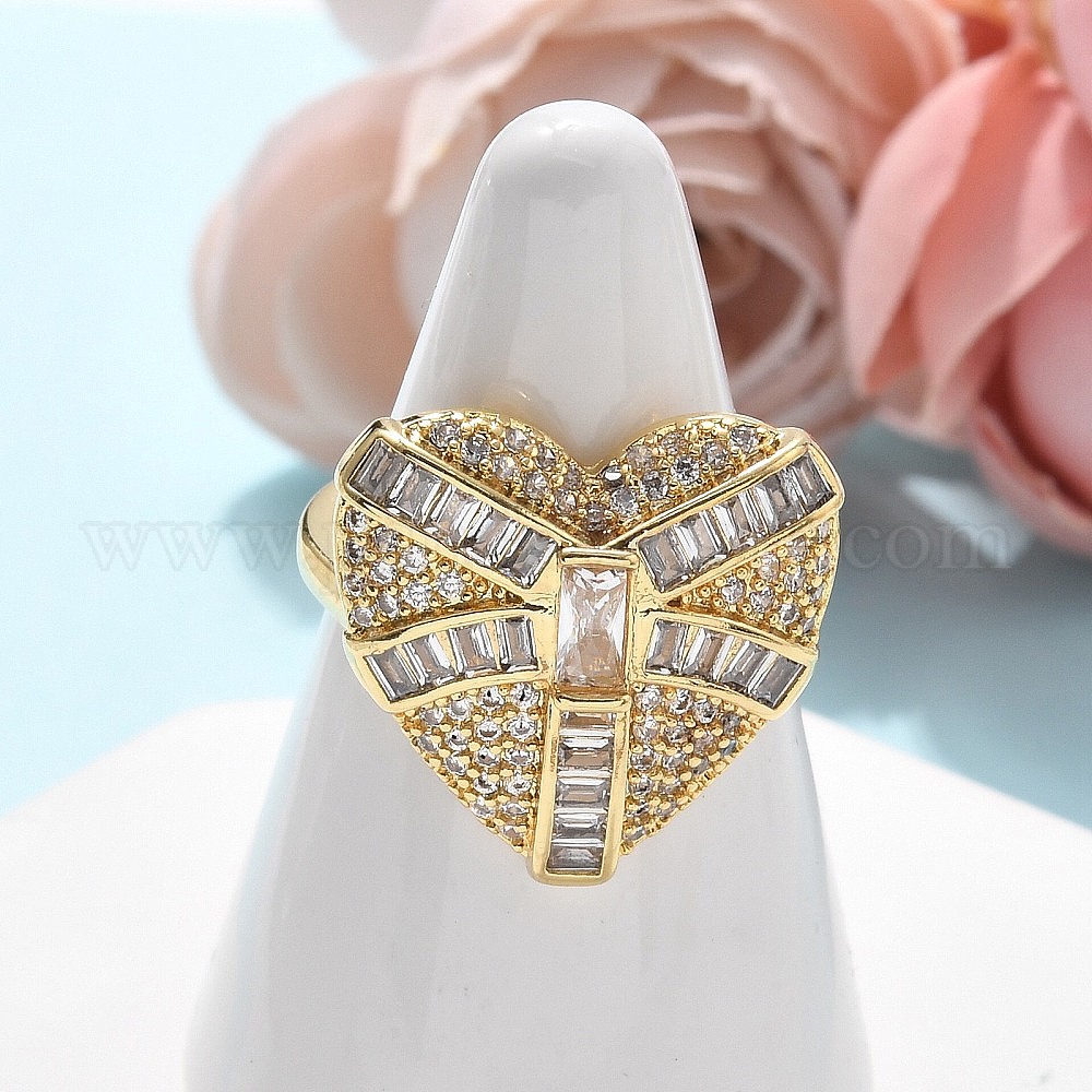 Латунные кольца-манжеты с микропаве и прозрачным цирконием для женщин, без кадмия и без свинца, сердце (032882)