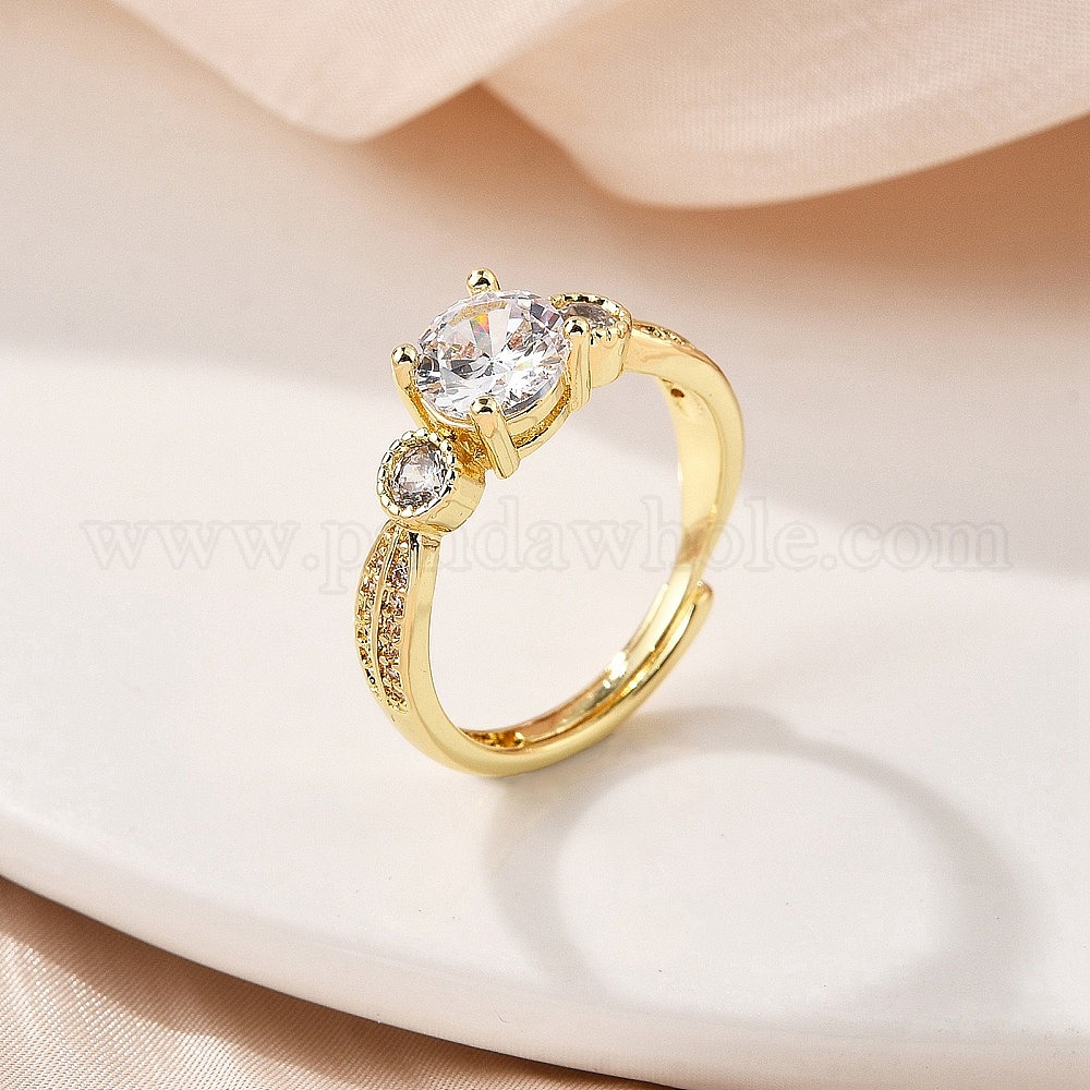 Кольца для женщин с микропаве из латуни и прозрачными кубическими цирконами, стойки покрытие, долговечный, без кадмия, без никеля и без свинца, ионное покрытие (ip)