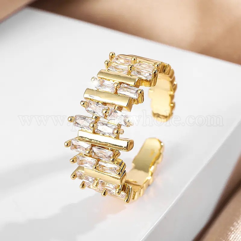 Модные латунные манжеты с прозрачным кубическим цирконием для женщин, прямоугольные