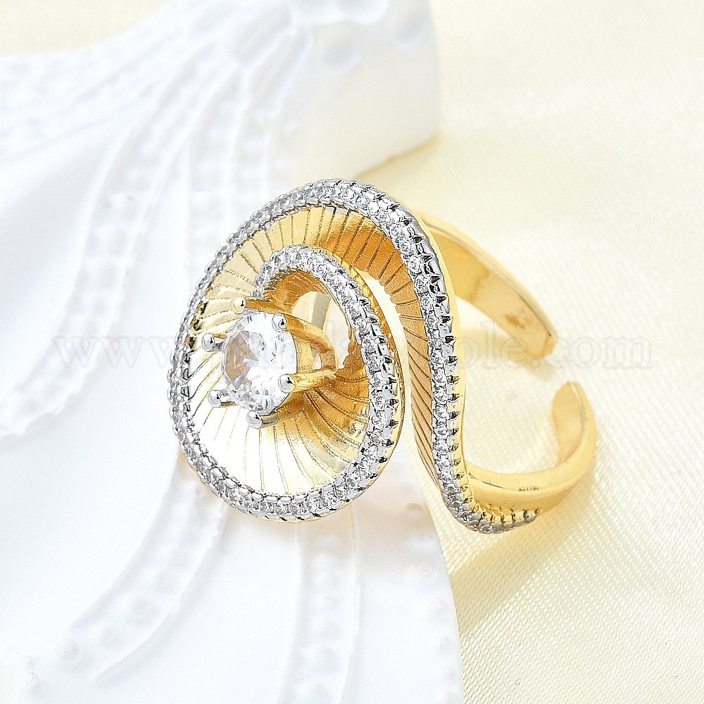 Латунные кольца-манжеты с микропаве и прозрачным цирконием для женщин, без кадмия и без свинца, цветок