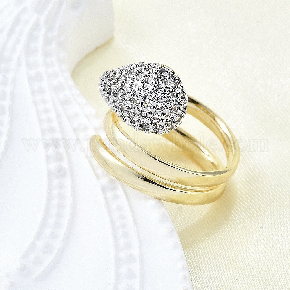 Латунные кольца-манжеты с микропаве и прозрачным цирконием для женщин, слеза