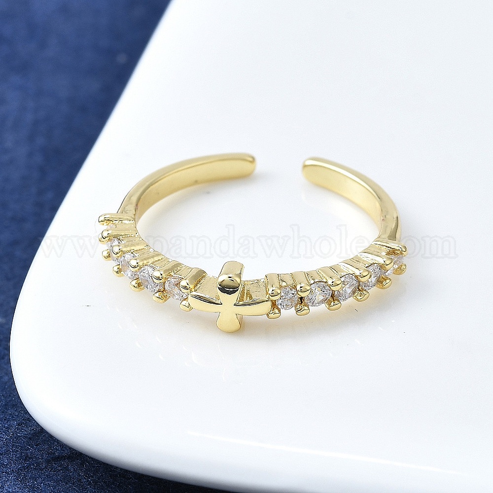 Открытые манжеты из латуни с микропаве и прозрачным цирконием для женщин, без кадмия и без свинца, крестик