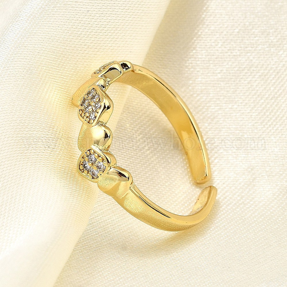 Латунные кольца-манжеты с микропаве и прозрачным цирконием для женщин, без кадмия, без никеля и без свинца, ромб (032JAS)