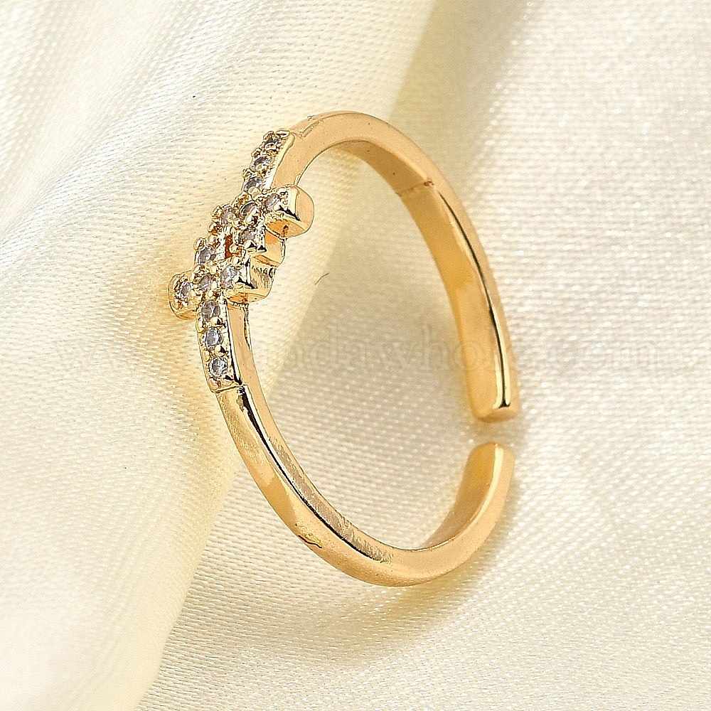 Латунные кольца-манжеты с микропаве и прозрачным цирконием для женщин, без кадмия, без никеля и без свинца, слэш (032JB1)