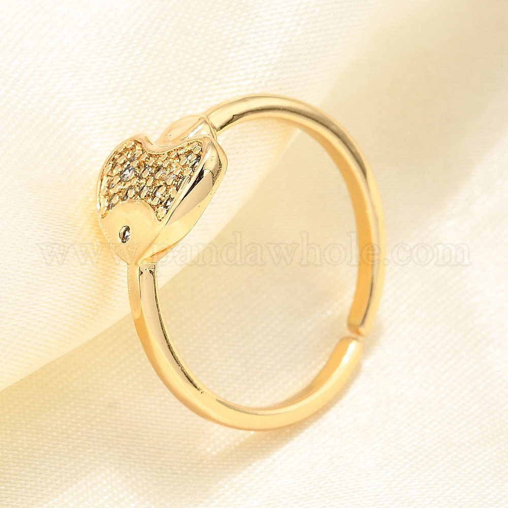 • Настоящее золото 18K Латунные кольца-манжеты с микропаве и прозрачным цирконием для женщин, без кадмия, без никеля и без свинца, рыба, реальный 18 k позолоченный, 10 мм