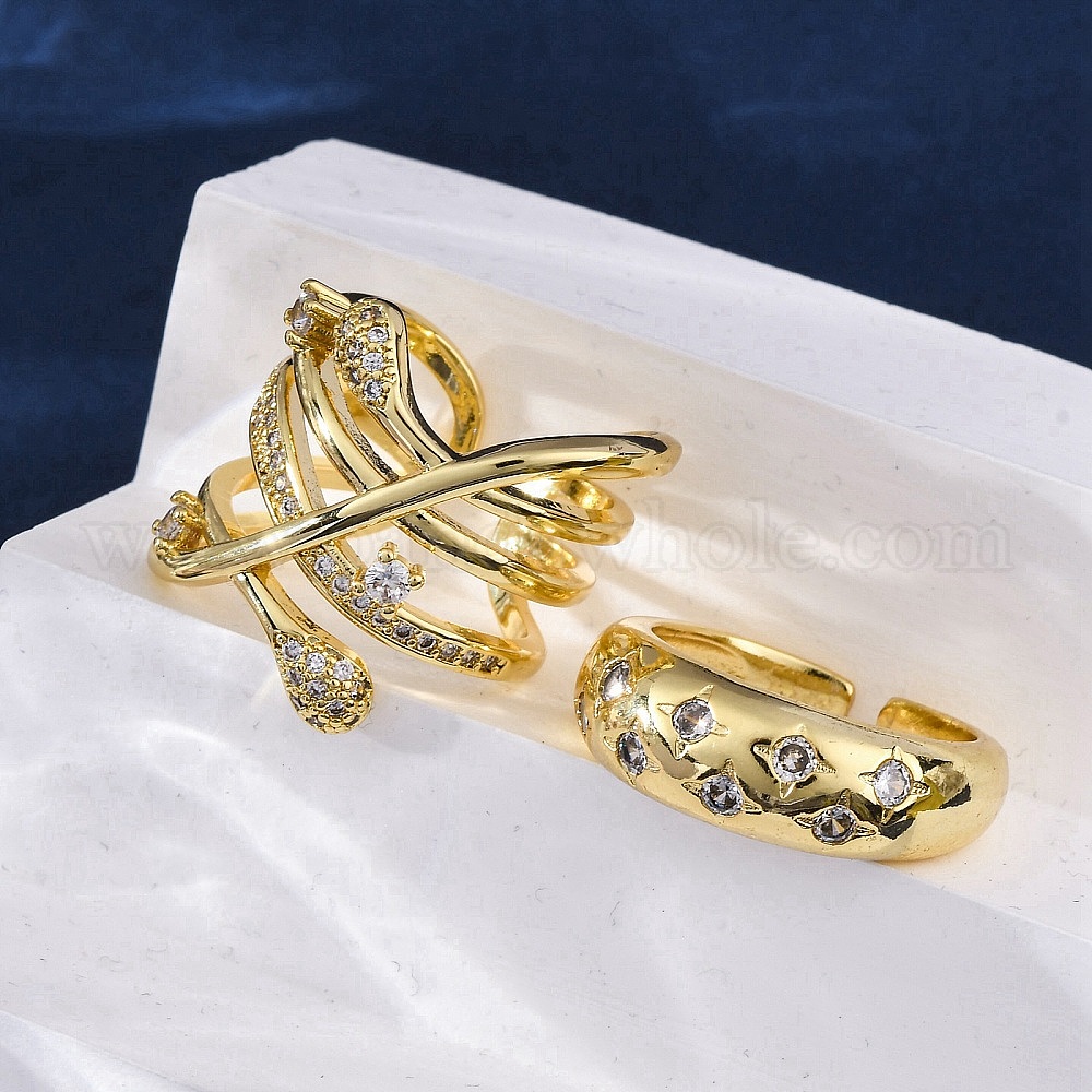 Латунные кольца-манжеты с микропаве и прозрачным цирконием для женщин, долговечный, без свинца и без кадмия