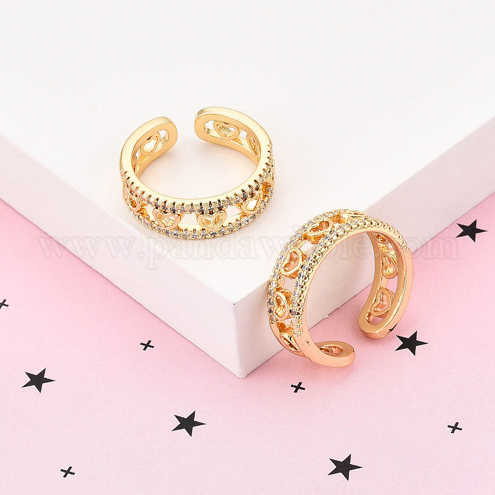 Латунные кольца-манжеты с микропаве и прозрачным цирконием для женщин, без кадмия и без свинца, сердце
