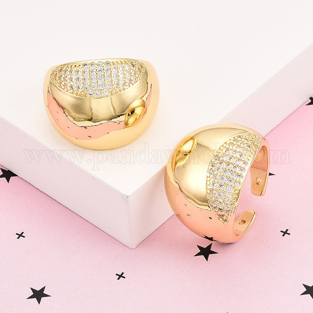 • Настоящее золото 18K Латунные кольца-манжеты с микропаве и прозрачным цирконием для женщин, без кадмия и без свинца, реальный 18 k позолоченный, 18.2 мм, внутренний диаметр: 17.5~18 мм