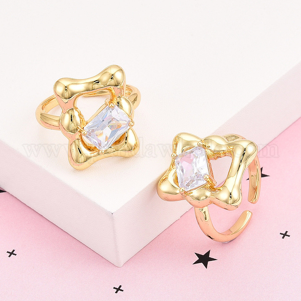 Латунные кольца-манжеты с микропаве и прозрачным цирконием для женщин, без кадмия и без свинца, прямоугольные