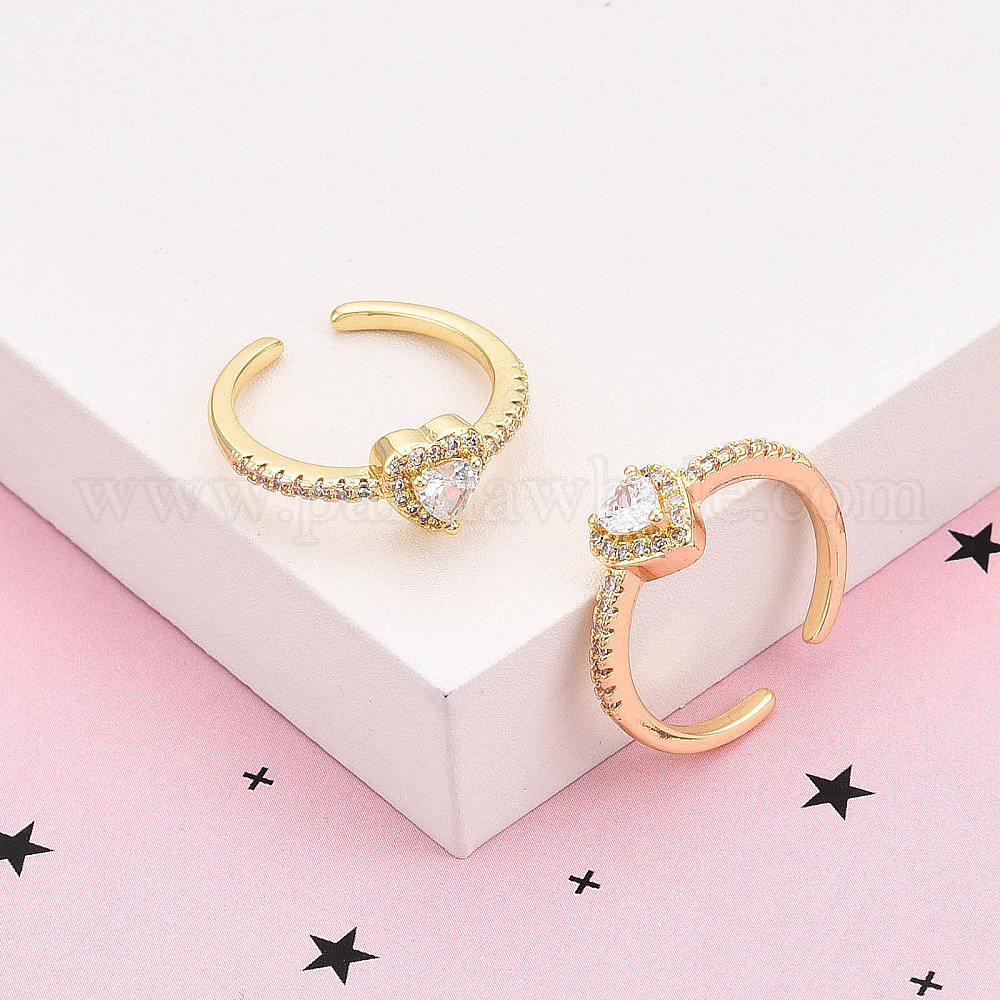 Латунные кольца-манжеты с микропаве и прозрачным цирконием для женщин, без кадмия и без свинца, сердце