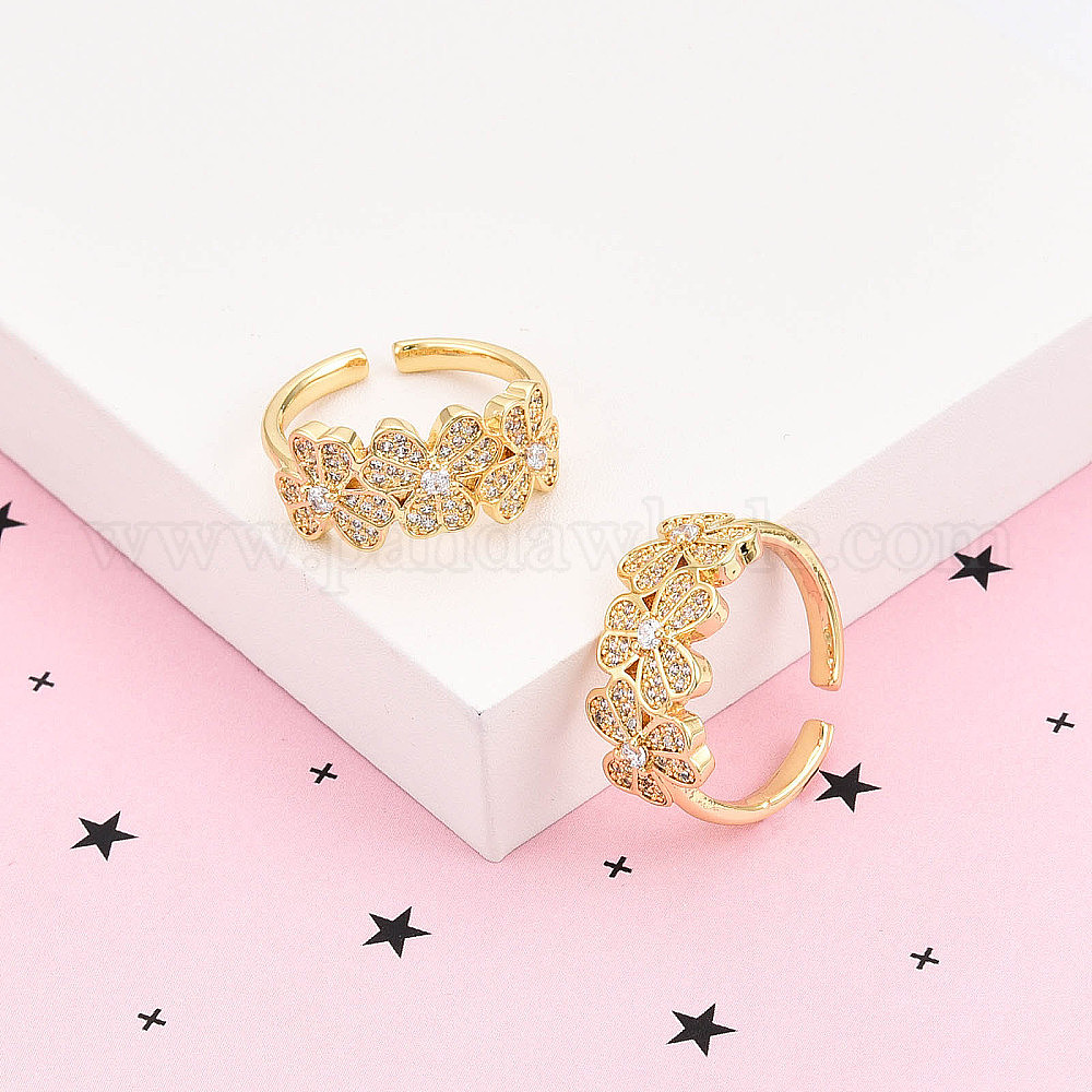 Латунные кольца-манжеты с микропаве и прозрачным цирконием для женщин, без кадмия и без свинца, клевер