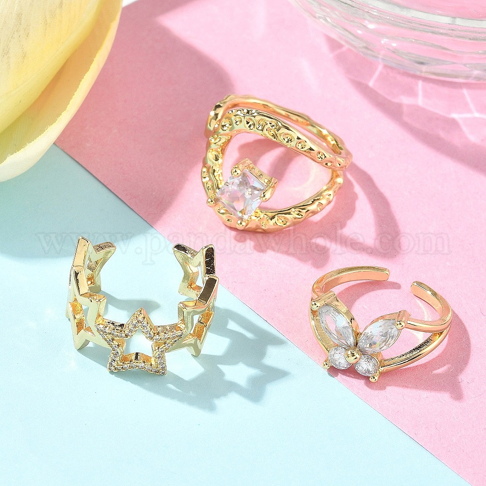 • Бабочка Латунные кольца-манжеты с микропаве и прозрачным цирконием для женщин, реальный 18 k позолоченный, бабочка, 0.41 дюйм (1.05 см)