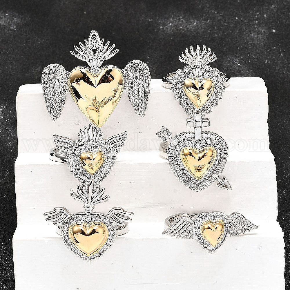 Кольца-манжеты в готическом стиле из латуни с микропаве из прозрачных кубических цирконий для женщин, сердце