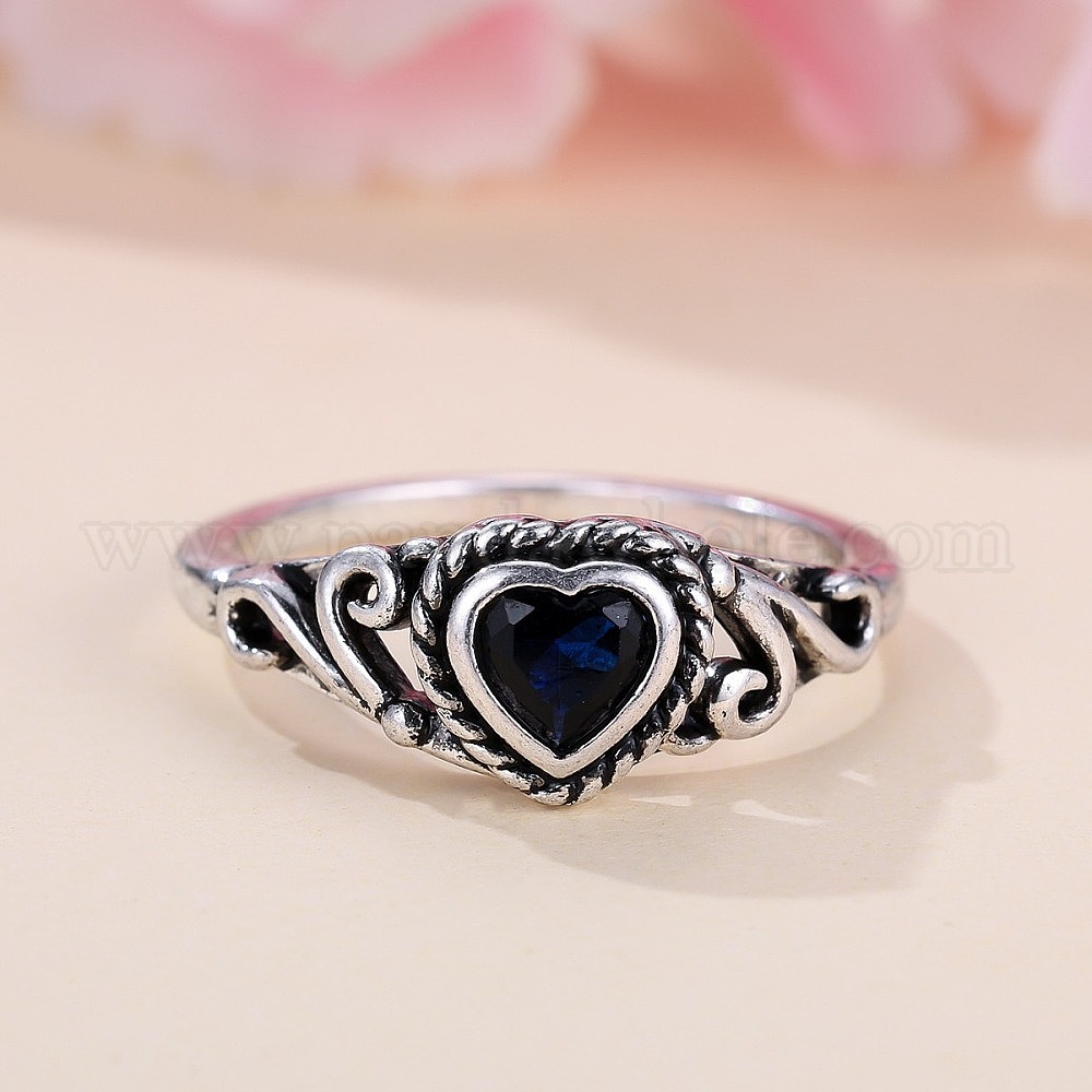 • Черный Кольца для женщин с микропаве из латуни и кубическими цирконами, сердце, чёрные, размер США 8 (18.1 мм)