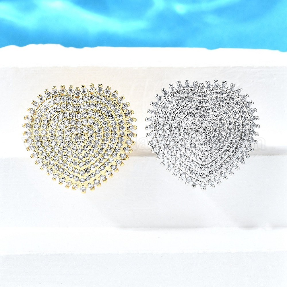 Латунные микро проложить манжеты кольца кубического циркония, сердце, открытые кольца для женщин