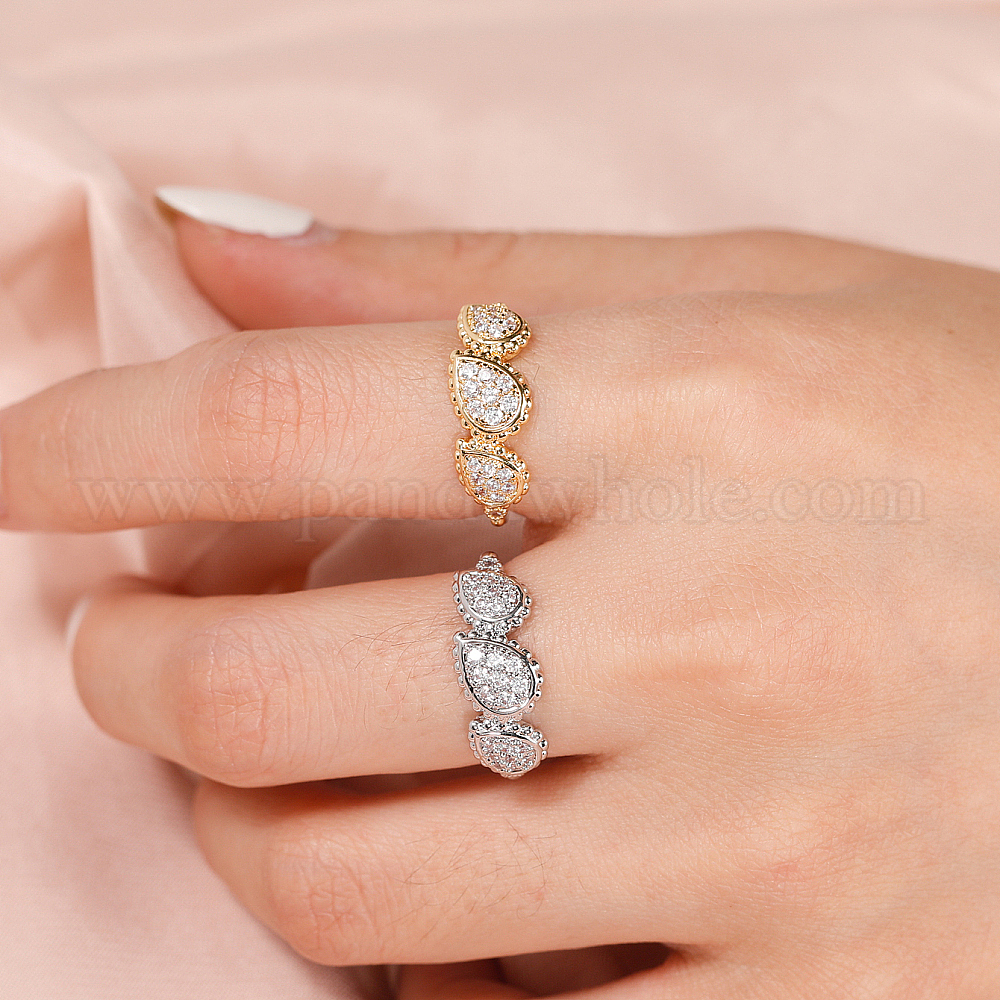 • Платина Изысканные каплевидные латунные кольца с микропаве из прозрачных кубических цирконий для женщин, платина, 6 мм, внутренний диаметр: 16~19 мм