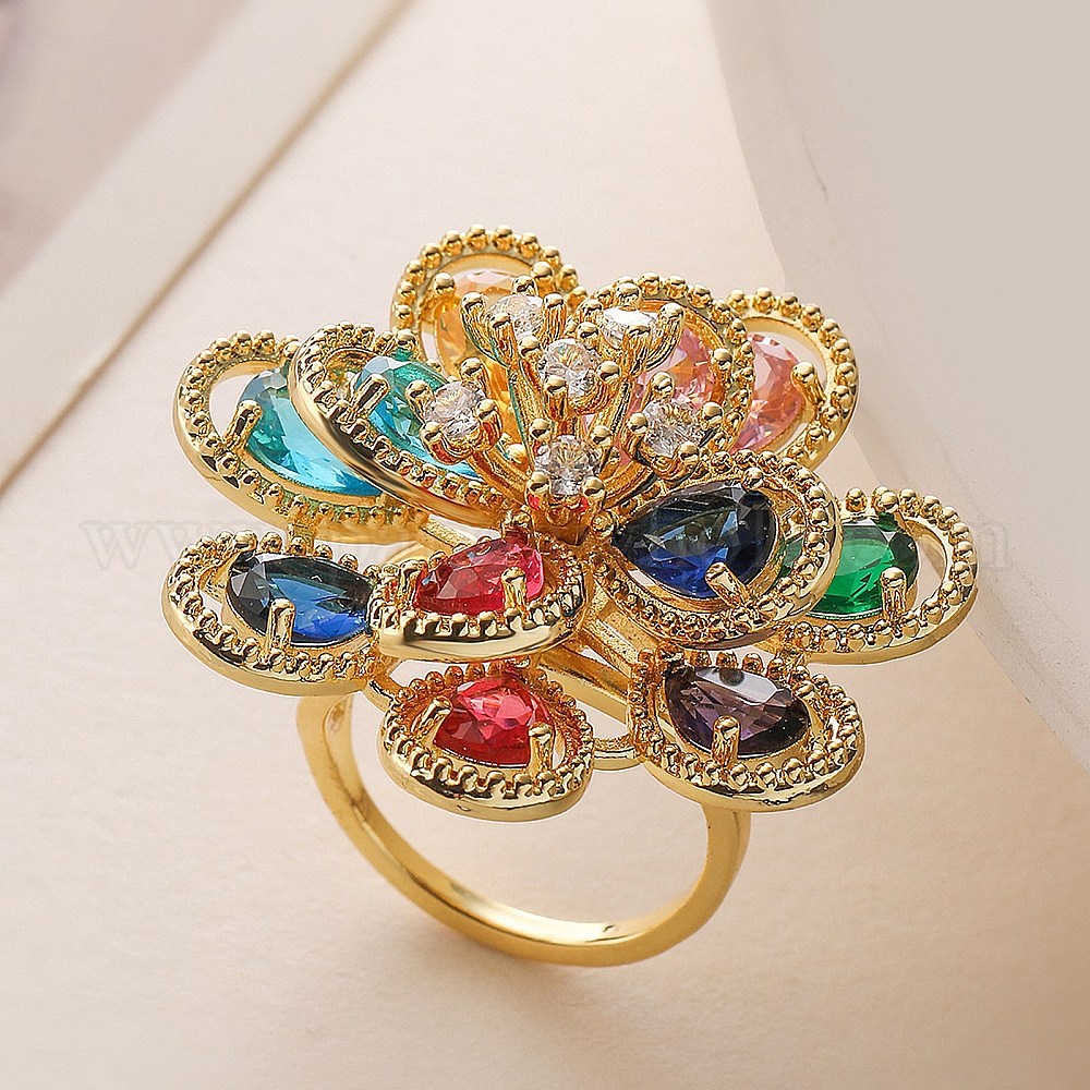 Кольца для женщин с цветочным узором из латуни с микропаве из кубических цирконий