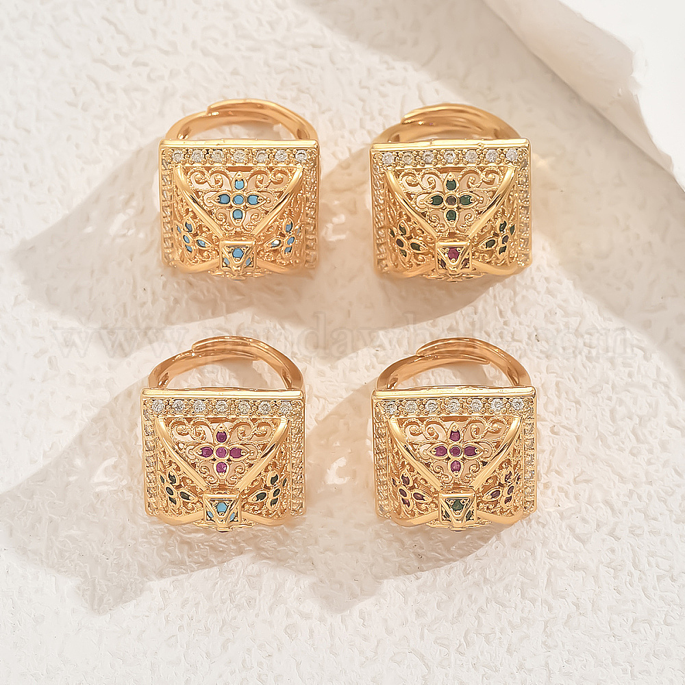 • Золотой Латунные микропаве кубические цирконии геометрические полые регулируемые кольца для женщин, золотые, 22 мм, внутренний диаметр: регулируемый