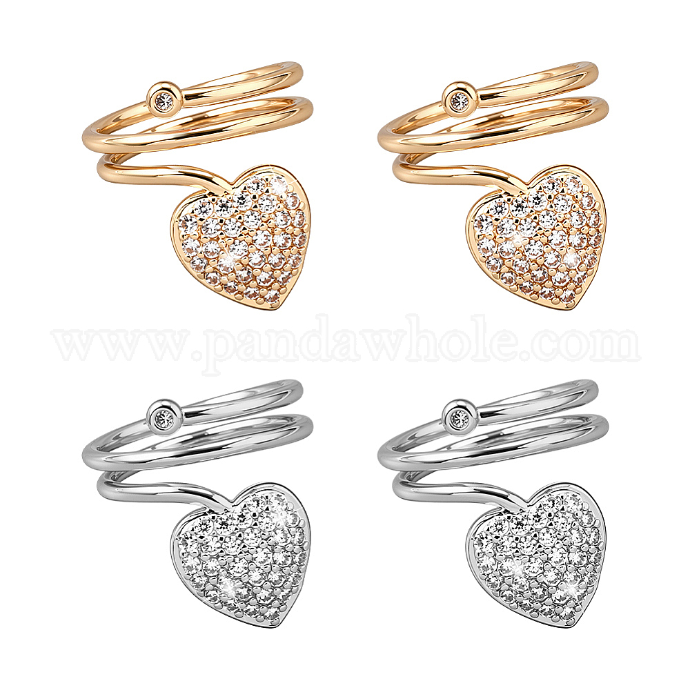 4 шт. 2 цветные латунные кольца с микропаве из кубического циркония для женщин, сердце