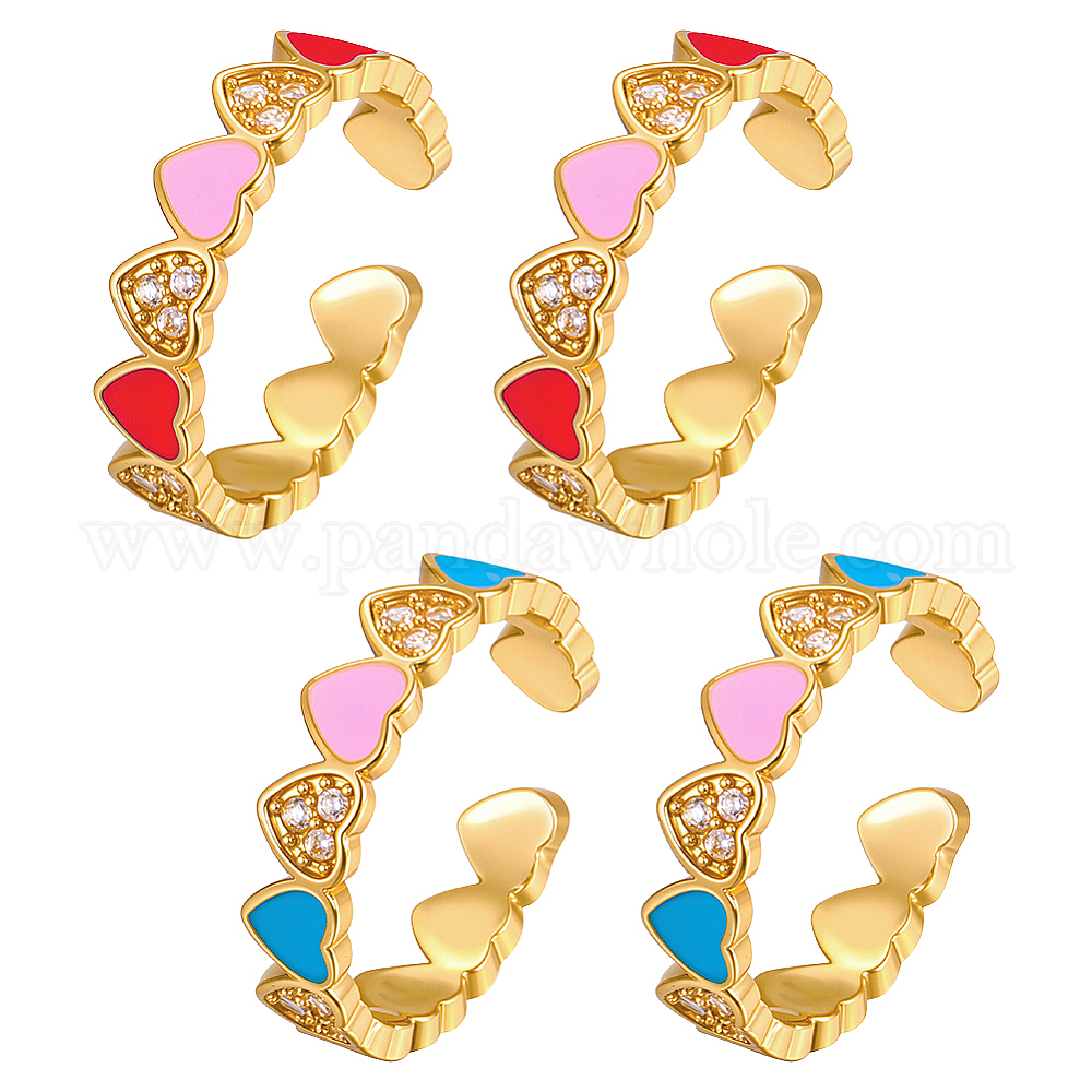 4 шт. 2 Кольца-манжеты для женщин с эмалью из прозрачного кубического циркония и микропаве в форме сердца из латуни, золотые
