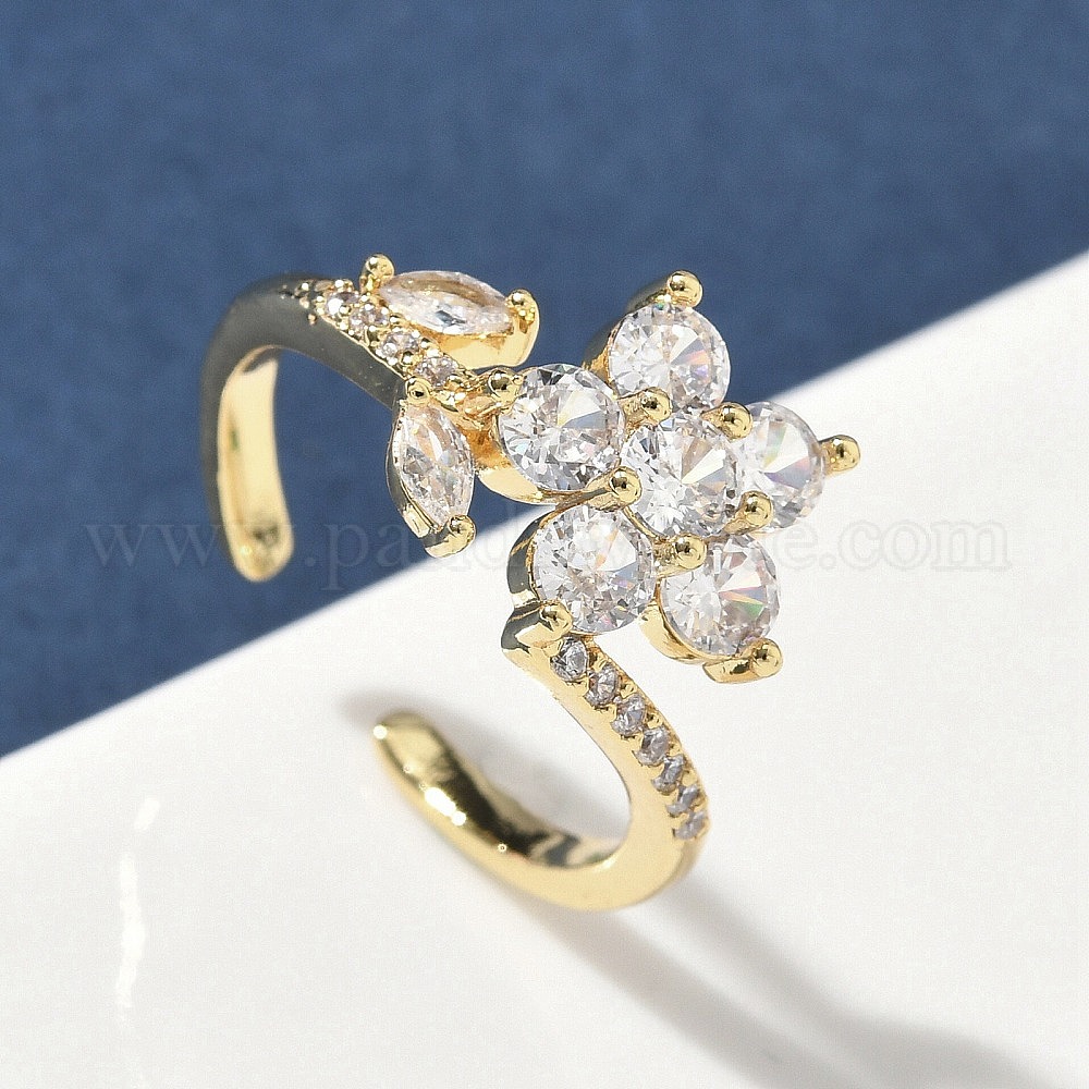 Манжеты из латуни с микро паве кубический цирконий для женщин, цветок, долговечный, стойки покрытие, без свинца и без кадмия