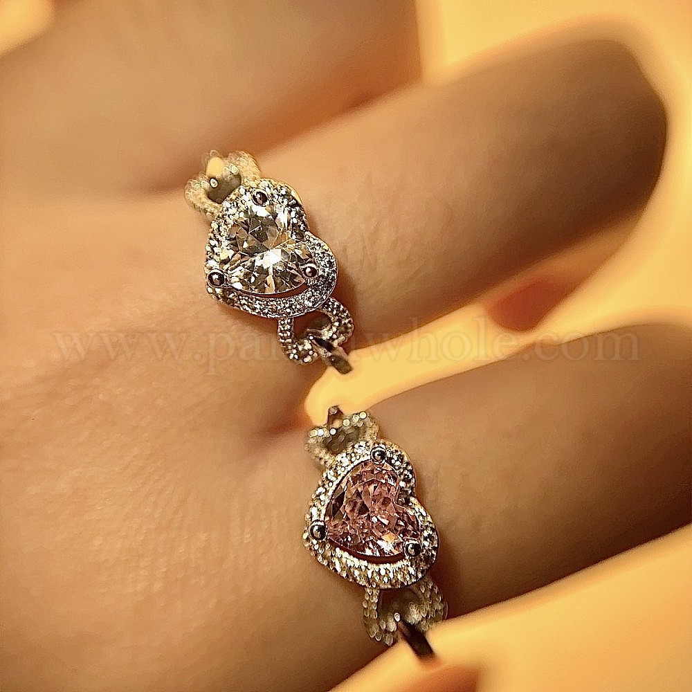 Кольца для пальцев в форме сердца из латуни с микропаве из кубического циркония, платина