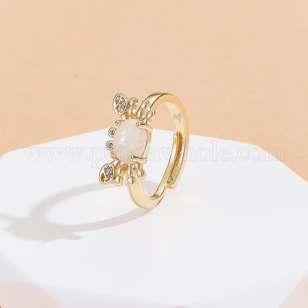 Регулируемые кольца для пальцев с микропаве из кубического циркония из латуни, краб, золотые (0361BD)