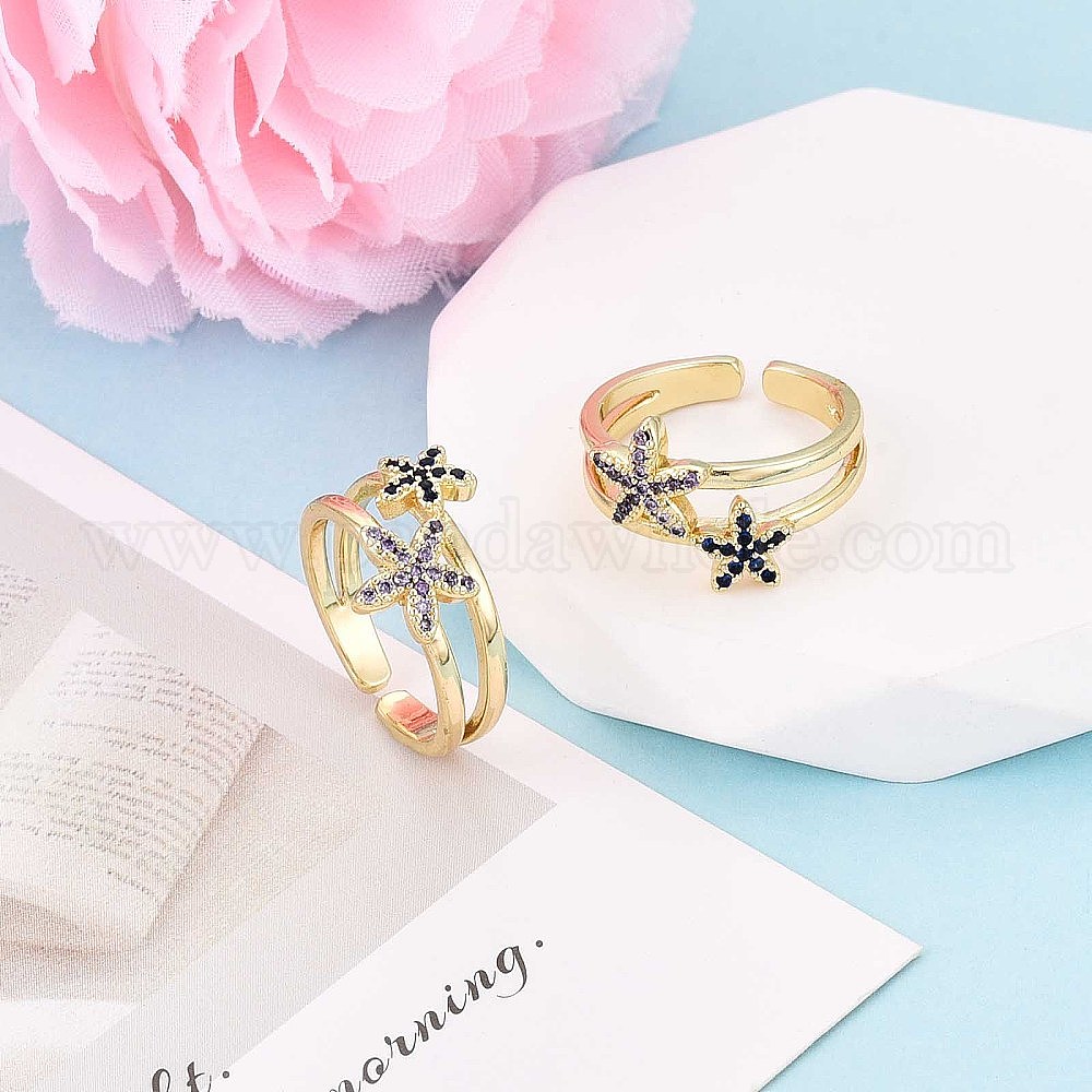 Манжеты из латуни с микро паве кубический цирконий для женщин, морская звезда