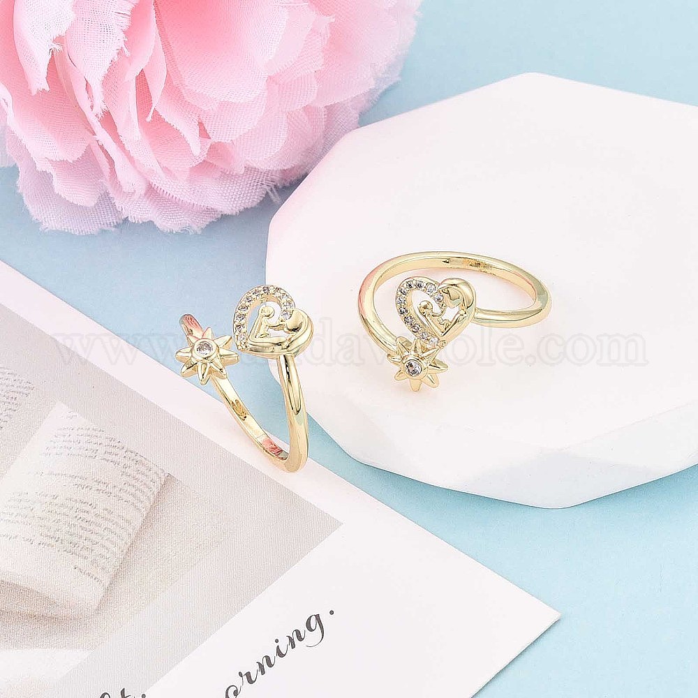 Манжеты из латуни с микро паве кубический цирконий для женщин, сердце и солнце
