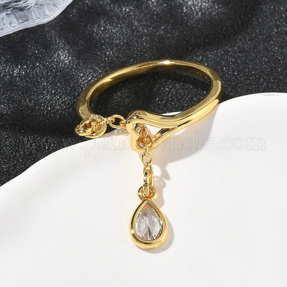 Латунные микро проложить пальцев кольца кубического циркония, слеза, долговечный, стойки покрытие, без свинца и без кадмия