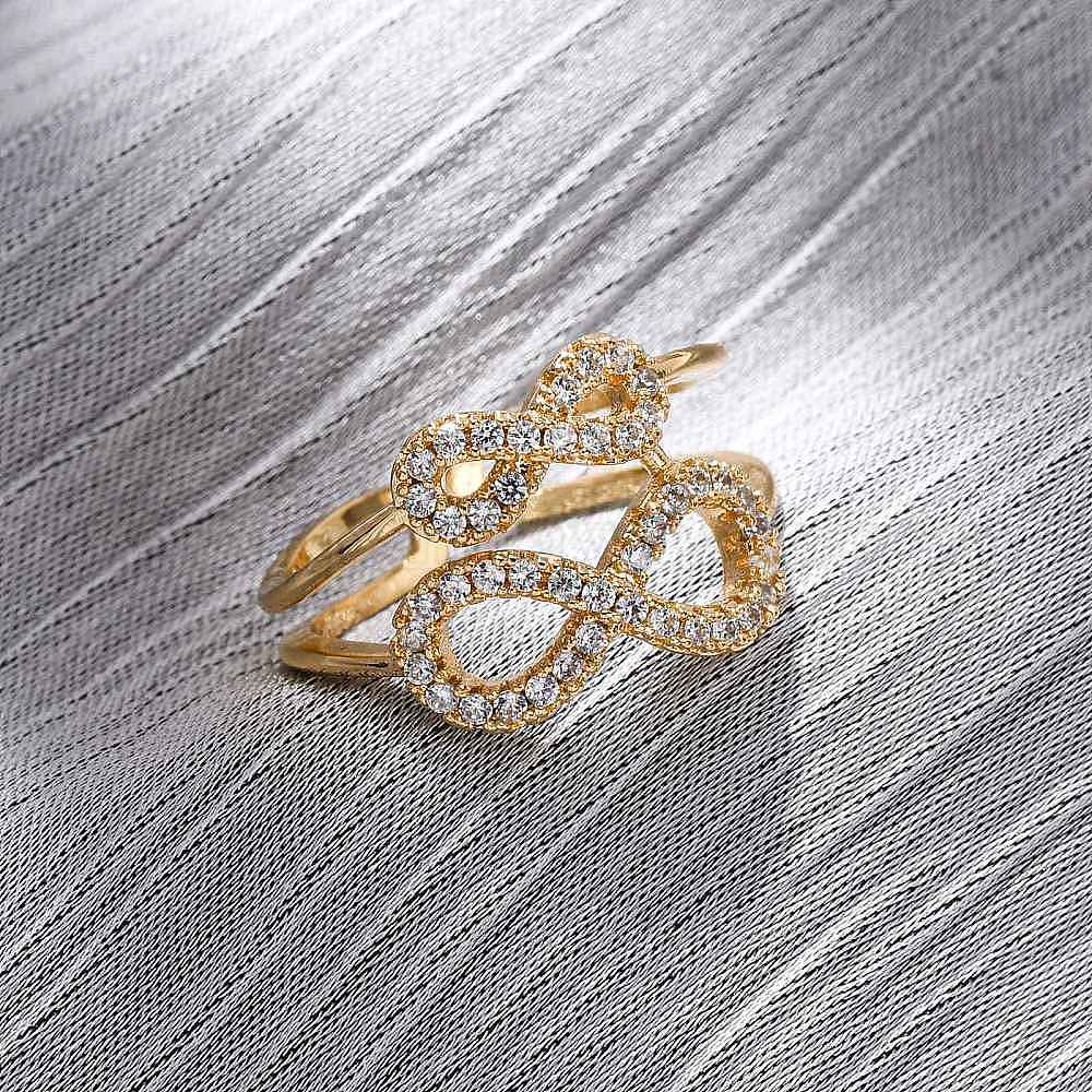 • Настоящее золото 18K Регулируемые манжетные кольца с микропаве из кубического циркония из латуни, бесконечность, реальный 18 k позолоченный, 13 мм, внутренний диаметр: регулируемый