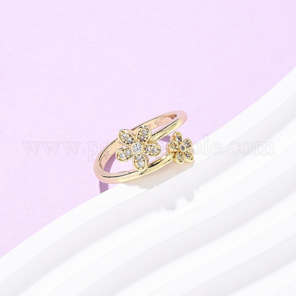 Кольца-манжеты из цветочной латуни с микропаве из кубического циркония для женщин, цветок, долговечный, стойки покрытие (037QJB)