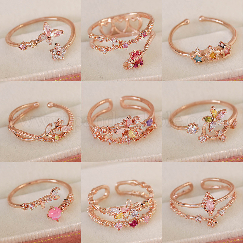 Регулируемые латунные открытые манжеты с микропаве из кубического циркония для женщин, цветок/бабочка