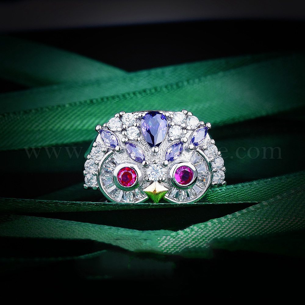 Латунные микро проложить манжеты кольца кубического циркония, сова головой