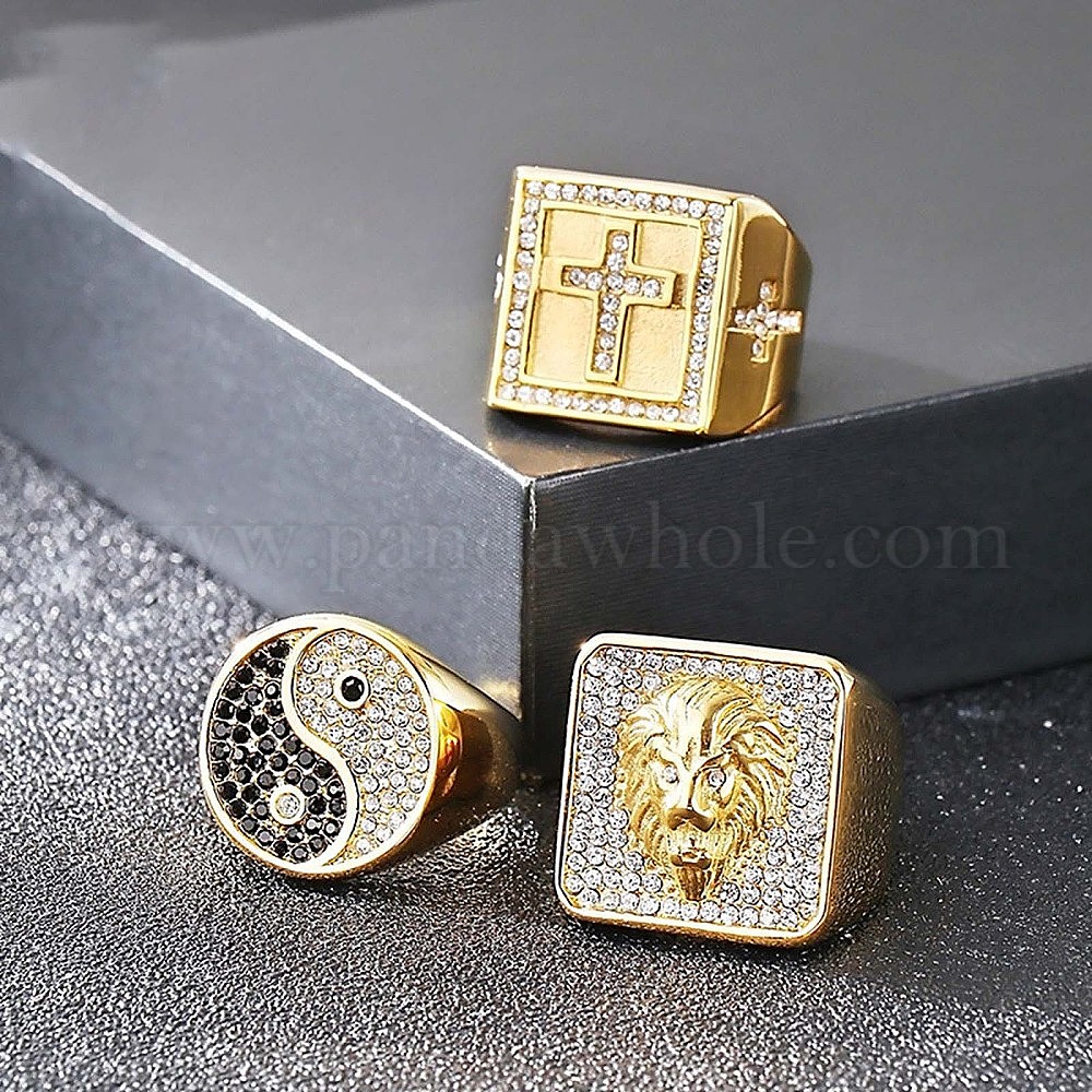 304 Кольца из нержавеющей стали с кубическим цирконием для мужчин, золотые