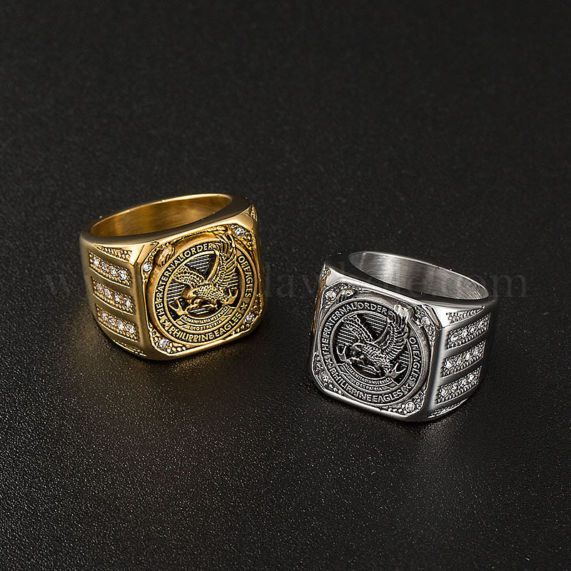 316 Кольца из нержавеющей стали с микропаве из кубического циркония, орел