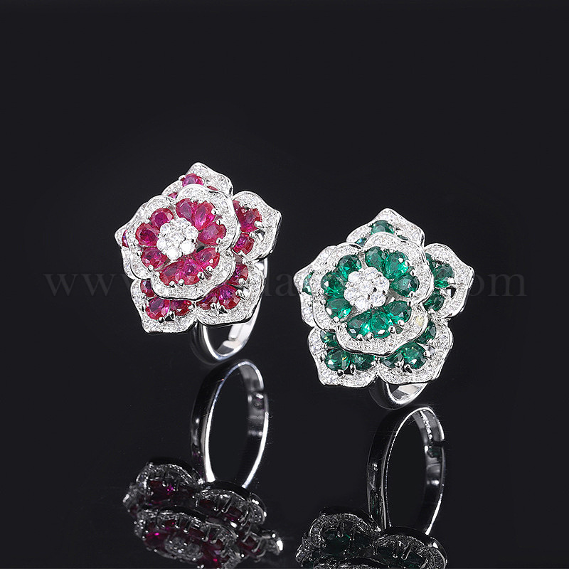 Латунные микропаве кубические цирконии манжеты открытые кольца для женщин, цветок, платина