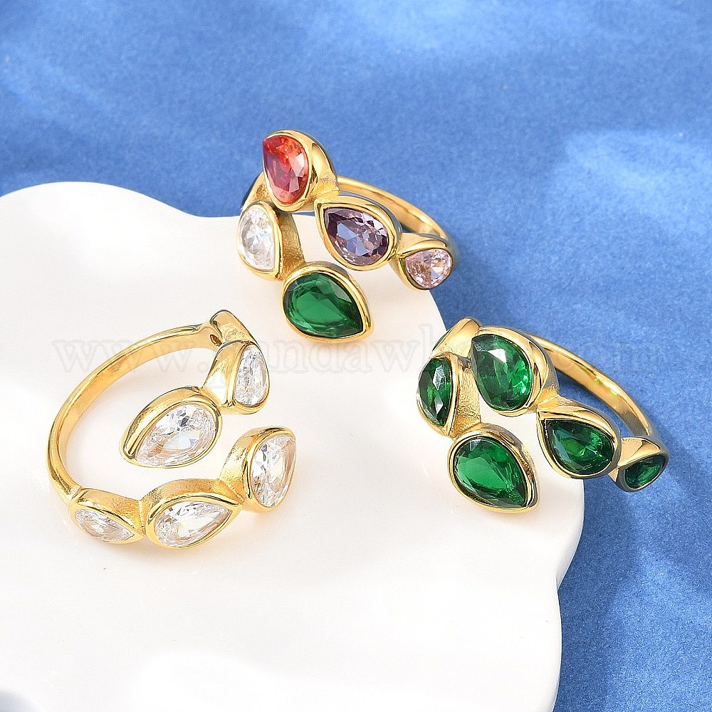 • Зеленый 304 Открытые кольца для манжеты из нержавеющей стали с кубическим цирконием, слеза, золотые, зелёные, 2.5~7.5 мм, внутренний диаметр: 19 мм