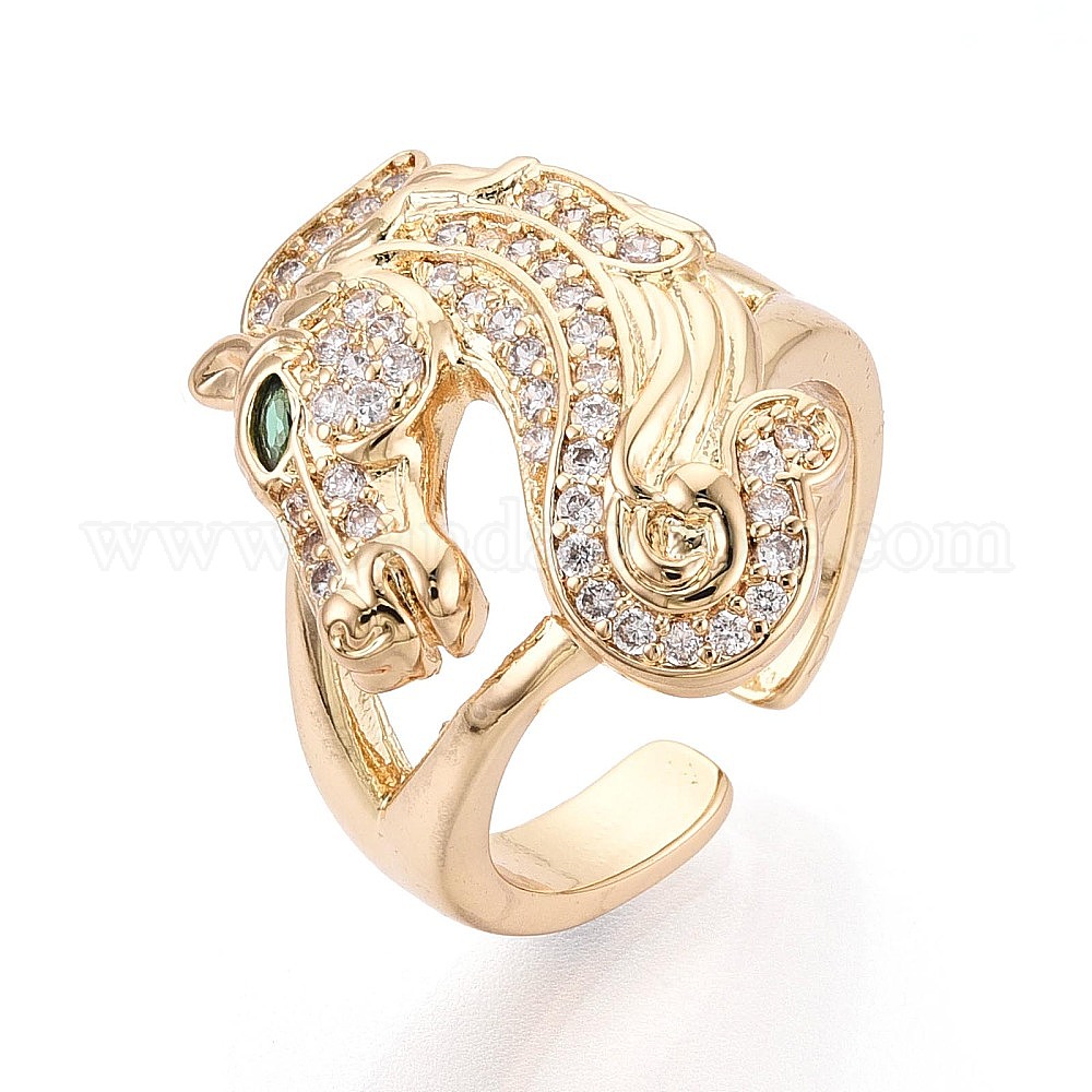 Открытые кольца манжеты из латуни с микропаве и кубическим цирконием, лошадь