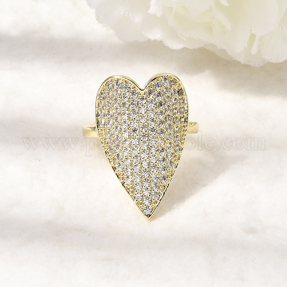 Латунные микропаве кубические цирконии манжеты открытые кольца для женщин, сердце, стойки покрытие, долговечный, без свинца и без кадмия