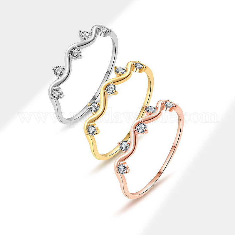 Кольца для женщин с микропаве из латуни и прозрачными кубическими цирконами, волна