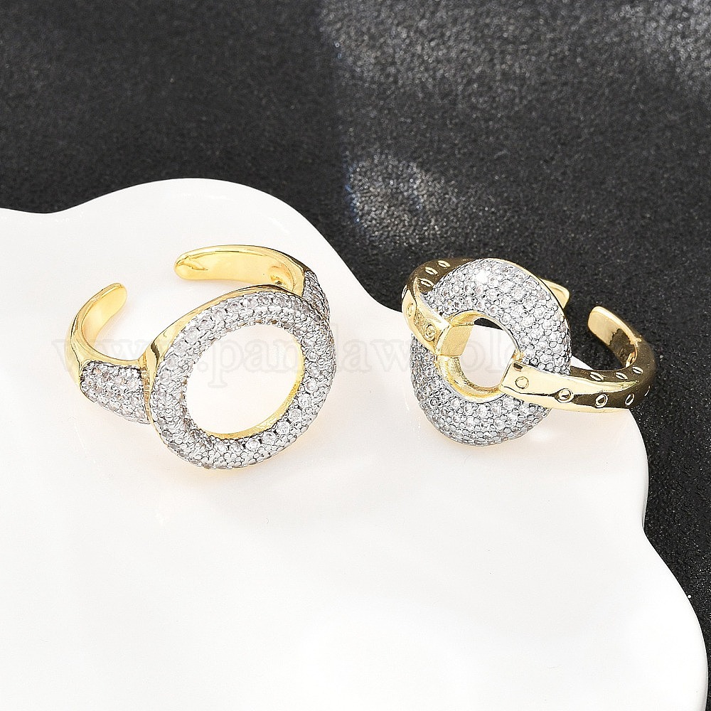 Латунные кольца-манжеты с микропаве из прозрачных кубических цирконий, круглые, долговечный, без свинца и без кадмия