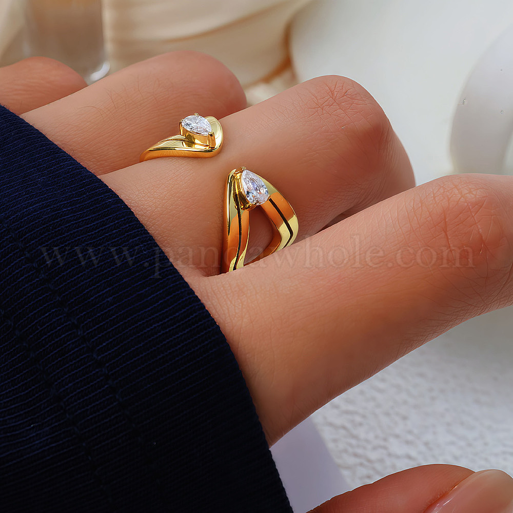 • Золотой 304 Открытые кольца для манжеты из нержавеющей стали и кубического циркония, слеза, золотые, размер США 7 (17.3 мм)