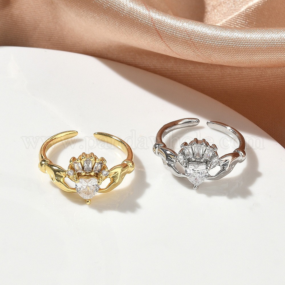 Открытые кольца манжеты из латуни с микропаве и кубическим цирконием, сердце, без кадмия и без свинца, стойки покрытие, долговечный